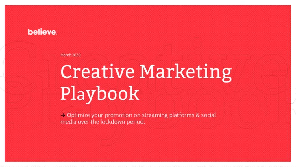 This is a playbook for releasing and marketing music during lockdown. Music is an incredibly powerful force for good, uplifting the soul and the imagination. Creating art in these times is key. We at Believe want to make sure you, as artists, are supported and give you all the tips and tricks you need to connect with your fans. More and more people are working from home around the world and we are already seeing traffic across all digital channels increase significantly; social networks, video platforms and streaming platforms. Being social is very human. Folks at home still want to connect with their friends and family, but also to their favorite artists. Now is a good time to maintain that contact with fans and bring your projects to life from home, all in the spirit of kindness.